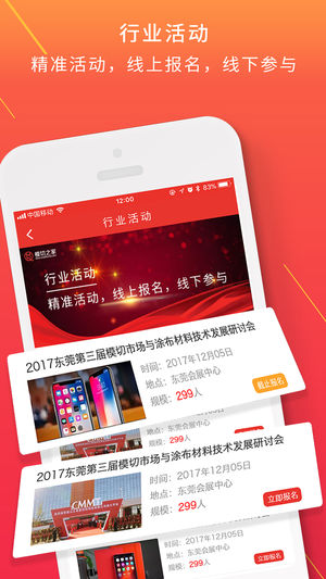 精准活动,线上报名,线下参与 - 精选高质量行业活动,提供便捷的报名通道和活动提醒服务,确保您不错过任何重要商机。
