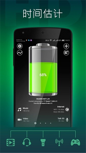 监控统计所有应用的耗电量,操作特别简单方便,实时提醒用户软件耗电异常。界面设计简洁明了,主屏直接显示剩余电量预估使用时间,下滑即可查看详细的耗电排行,新手也能快速上手使用。