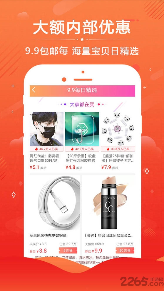 9块9包邮:精选商品,低价超值,9块9包邮!严选生活必需品和小家电,所有商品经过质量检测,部分支持"先用后付"服务。