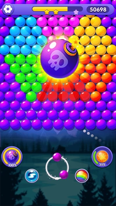 ·游戏玩法简单易上手,玩家只需要通过触控操作发射彩色泡泡,但想要精通游戏则需要掌握角度计算和策略规划,适合各个年龄段的玩家。