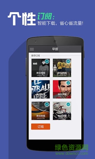 3.个性订阅:根据用户兴趣智能推荐视频专辑,内容自动定期推送,支持无线局域网环境下自动下载到本地,既省心又省流量,打造个性化观赛体验。