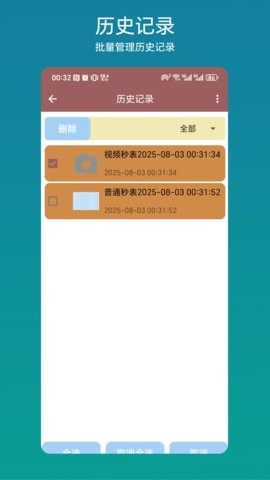 1、独特的视频秒表模式,支持在录制视频时同步计时,为视频创作和活动记录提供便利。该功能实现了计时与视频的完美融合,计时信息会以美观的样式叠加在视频画面上。支持多种视频编辑功能,可以调整计时显示的位置、大小和透明度,确保不影响视频主要内容。