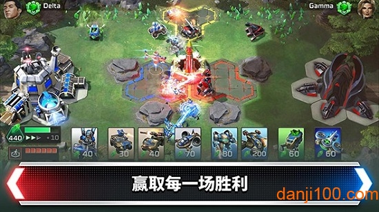 游戏的角色建模精细入微,超过60种作战单位各具特色,从普通步兵到重型机甲都栩栩如生。虽然采用1v1对战模式,但丰富的战术变化让每场战斗都充满新鲜感。两大阵营拥有超过40种功能各异的建筑设施,随着玩家等级提升逐步解锁。创新的六边形行动系统为传统RTS带来了全新维度的战术思考。游戏的音效设计堪称一流,从枪炮轰鸣到机甲移动都极具临场感。3D成像技术完美呈现了战场细节,让玩家仿佛置身于真实的战争环境中。