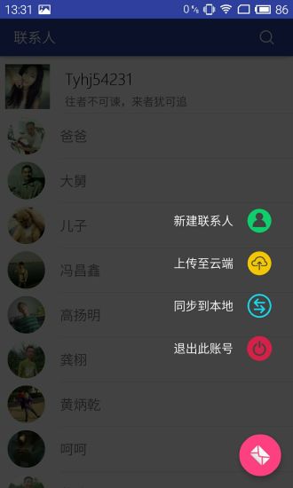提供免费云存储联系人的服务(包括联系人头像),再也不怕联系人丢失了;支持批量导入导出,智能去重功能避免重复保存。可设置自动备份频率,确保数据实时更新。