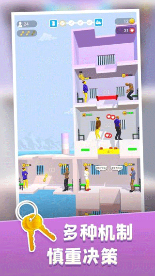 海量特色关卡设置,面对不同特质的犯人群体。玩家需要针对各类特殊需求制定个性化分配方案,在有限条件下实现最优的生存效果。