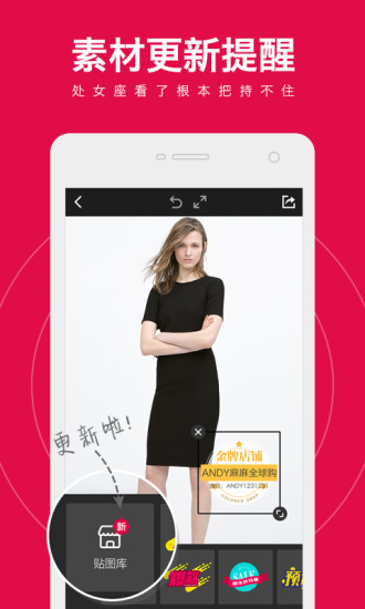 专为电商设计的贴纸库,包含搞怪、卖萌、活动等多种风格,助力营销宣传更具吸引力。