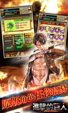 丰富的角色阵容,玩家可操控艾伦、三笠、兵长等多名人气角色。