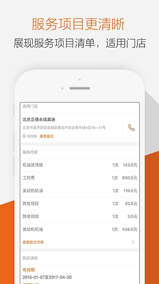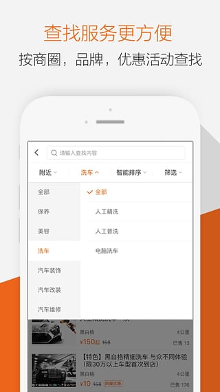 5、丰富品类:涵盖保养维修、美容清洁、保险金融等14大类200+细分服务项目,满足不同车型、不同阶段的养车需求;
