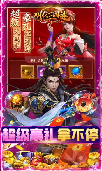 游戏为玩家准备了丰厚的开服福利,助你轻松开启三国征程。充值比例高达1:1000,性价比极高。新玩家上线即可获得188888元宝,还有6元真充卡和首充激活特权。特别赠送稀有红色武将关明,让你推图闯关事半功倍。升级还能领取红包奖励,免费激活VIP40特权。更有白嫖福利等你来拿,最高可领取2万元真充奖励。所有福利包含:万元真充、188888元宝、6元真充卡以及红色武将关羽激活卡等超值道具,让你在游戏初期就能获得强力支持。