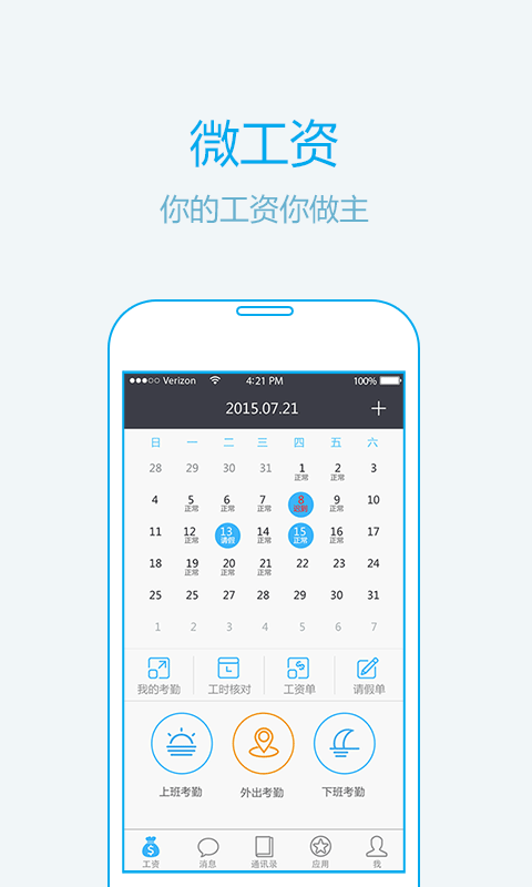 微工资APP是一款专为企业员工打造的智能工资管理应用,集考勤、工资核算、移动办公于一体。通过这款应用,员工可以随时随地查看个人考勤记录、提交请假报销申请、实时接收工资单,彻底摆脱传统纸质流程的束缚。同时,内置的即时通讯功能支持跨部门协作,让工作沟通更加高效便捷。无论是GPS精准打卡、工资自动核算,还是移动审批流程,微工资都能帮助企业实现数字化管理转型,大幅提升人力资源和财务部门的工作效率。目前提供网页版和移动端双平台支持,未来还将整合供应链资源,打造全方位的企业服务生态。