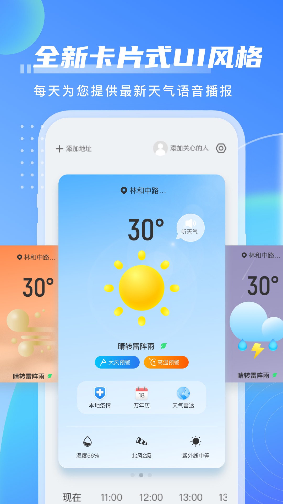 2.界面简洁:采用卡片式设计,重要天气信息一目了然,操作逻辑清晰直观。