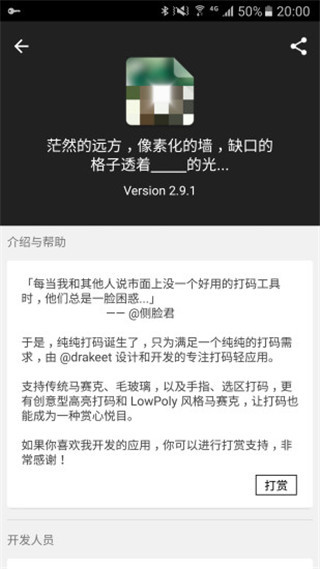 3、而纯纯打码的作者侧脸君为了让更多人用上只为打码而存在的app,设计开发了这款纯纯打码。开发者历时8个月进行用户调研,收集了2000多名测试用户的反馈,最终打磨出这款零学习成本的打码工具。