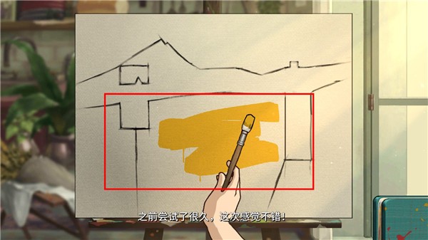使用黄色和红色颜料将未完成的画作补充完整,获得新的剧情进展。