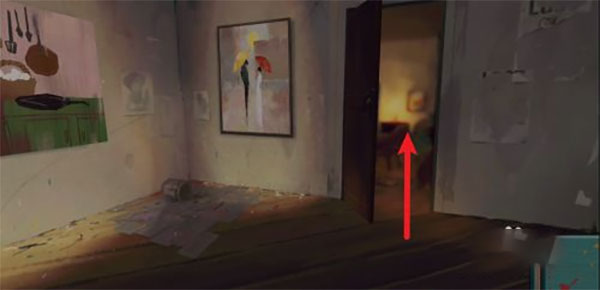 在房间墙面上找到画板,使用颜料将伞涂成黄色和红色,同时获取隐藏的信件线索。
