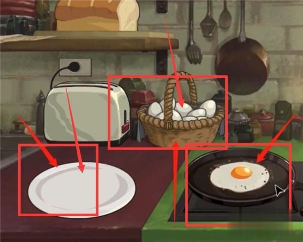 第四步,使用厨房的【厨具】制作【早餐】,补充体力后继续探索解谜。