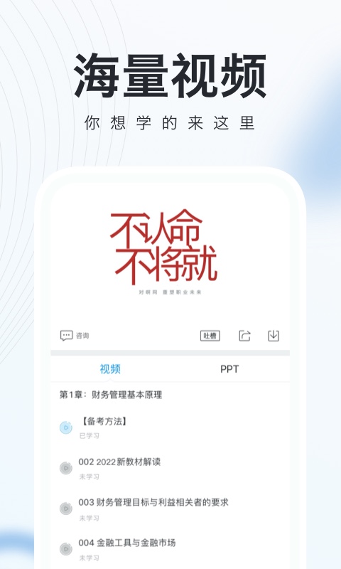 注册会计师CPA考试全部视频课程。免费,免费,免费看。课程内容由资深讲师团队精心录制,涵盖基础精讲、重点突破、冲刺串讲等不同阶段。视频支持倍速播放、离线下载等功能,满足不同学习场景需求。每个知识点都配有对应的案例解析,帮助考生深入理解考试要点。系统还会根据学习记录智能推荐相关视频,实现精准学习。