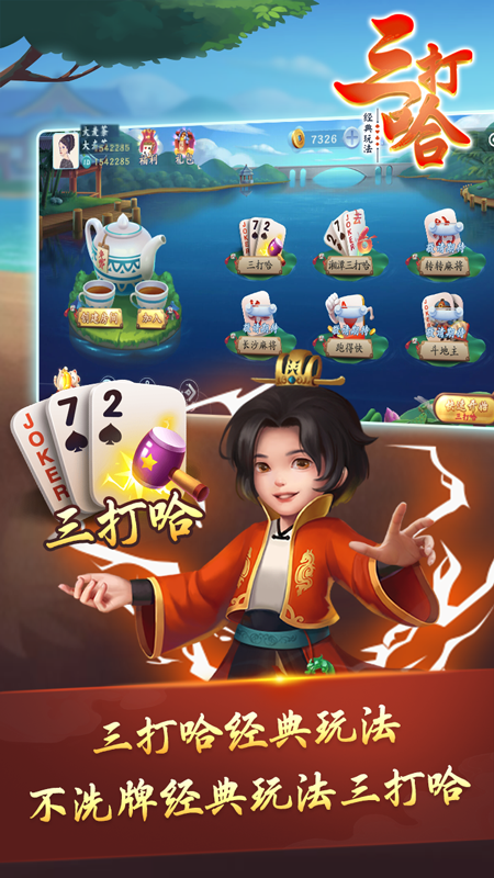 4、与传统升级游戏不同,三打哈采用独特的1V3对抗模式,三位玩家需要精诚合作对抗庄家。这种非对称竞技玩法大大提升了游戏的策略深度和互动乐趣,考验玩家的竞合智慧与团队协作能力。