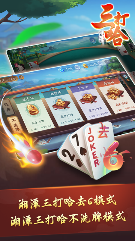 三打哈起源于湖南地区,现已发展成为全国流行的扑克游戏,在不同地区有着"三打一"、"二七王"等别称。游戏采用两副扑克牌,去掉3和4,固定以7为主牌。王、2、7作为常主牌,配合8张底牌的独特设计,使得游戏既考验个人技巧又强调团队配合。这种融合了升级和拖拉机玩法的创新规则,让三打哈在保留传统棋牌魅力的同时,又增添了更多竞技性和趣味性,成为当下最受欢迎的扑克游戏之一。