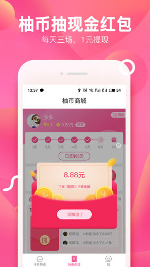 柚币活动:在"我的柚币"页面,用户可以使用积累的柚币参与抽奖活动。奖品包括实用家电、精美美妆、数码产品等。通过每日签到和购物都能获得柚币,让用户享受更多额外福利。