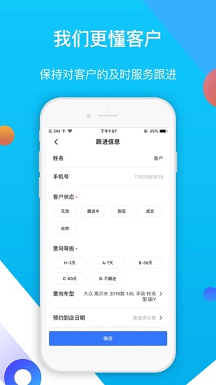 让您管理好自己的客户,及时为客户提供对应的汽车资料:客户分级管理系统支持智能提醒,重要客户自动置顶,历史沟通记录完整保存;