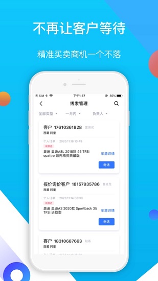 让车商抓住商家,不会错过任何售车机会:智能商机预警系统实时监控市场动态,重要商机自动推送,支持快速报价功能;