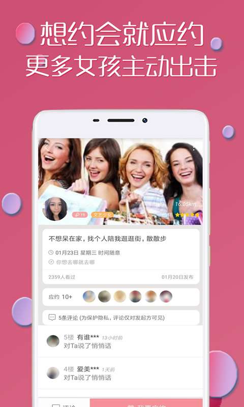 【海量用户】平台覆盖全国上千个城市,用户资料实时更新,确保信息真实可靠。同城约会功能让您足不出户就能认识附近优质单身人士,约会对象类型丰富多样:从知性御姐到可爱萌妹,从温柔傻白甜到个性犀利姐,总有一款适合您。通过智能筛选功能,可以快速找到符合您要求的约会对象,让交友变得更简单高效。