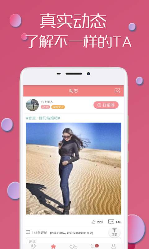 【智能互动】系统围绕用户个人喜好设计,提供丰富的话题库和互动模式。您可以深入了解对方的交友偏好,掌握最佳牵手时机,学习择偶标准把控技巧,大幅提升约会成功率。同城话题聚焦功能让您轻松找到附近志同道合的朋友,无论是线上交流还是线下聚会,都能让社交变得更加自然顺畅。
