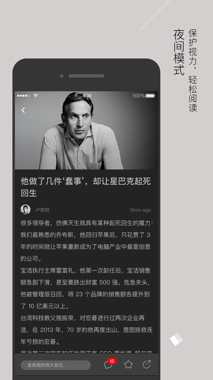 经理人分享app秉持"不将就"的核心原则,严格把控内容质量,拒绝肤浅单调的信息,为用户提供具有思想深度和实践价值的职场智识。我们坚持"不妥协"的服务理念,通过专业编辑团队和智能算法,从海量信息中筛选出真正适合高端职场人士的精品内容。应用每日从超过1000家国内外权威资讯平台精选提炼,涵盖管理实践、商业创新、市场营销、人力资源等多元领域,确保每篇文章都具备专业性和实用性。"不凑合"是我们的内容态度,致力于为追求卓越的职场精英打造一个高质量的知识分享社区,让每位用户都能获得个性化的职业发展指导。