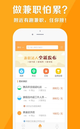 《兼职达人》是一款专注于高效匹配兼职需求的移动应用,致力于为求职者和企业搭建值得信赖的桥梁。通过智能算法与人工审核双重保障,平台汇聚了全国70多个城市的优质岗位资源,每日更新超6000个真实兼职机会。无论是大学生寻找社会实践,还是都市白领赚取额外收入,都能在这里发现高薪靠谱的选择。应用独创的"附近兼职"功能可智能推荐3公里内的机会,配合企业实名认证体系和免费兼职保险服务,真正实现"安全赚钱,轻松增收"的核心价值。