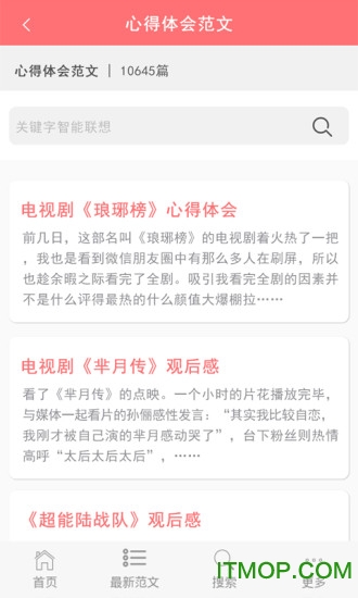 范文大全app是您写作路上的良师益友。作为查字典网旗下的专业范文平台,它汇聚了来自各领域的优质范文资源,从基础写作到专业论文,从日常应用到职场文书,应有尽有。软件采用智能分类系统,将海量范文按照应用场景、专业领域等维度进行精细划分,确保用户能够快速找到所需内容。无论是学生提升写作水平,还是职场人士处理文书工作,都能在这里获得专业指导。我们致力于打造最全面、最便捷的范文查询工具,让写作变得更简单。
