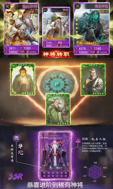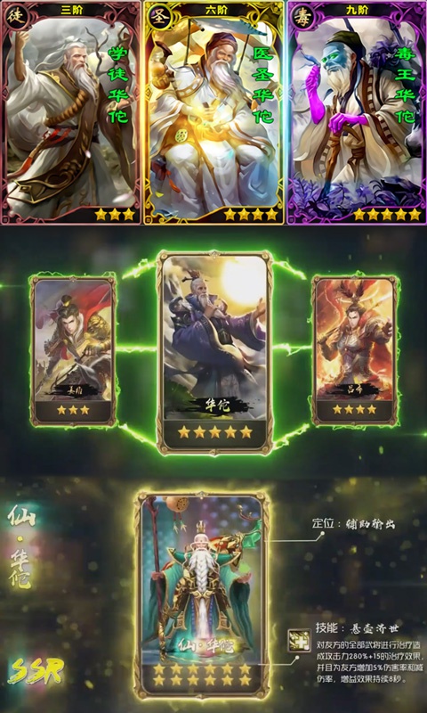 《毒神华佗传》是一款以三国为背景的卡牌策略手游,为玩家呈现了一个充满奇幻色彩的三国世界。游戏不仅拥有精美的画面和丰富的玩法,更将医圣华佗的传奇故事重新演绎,打造出一个以毒入道的独特修仙世界。玩家将扮演穿越异界的华佗,通过收集和培养卡牌英雄,组建强大的阵容,体验策略与战斗的完美结合。多元化的游戏模式,包括PVP竞技、PVE副本、卡牌融合等,让每位玩家都能找到属于自己的乐趣。无论是剧情党、收集控还是竞技爱好者,都能在这款游戏中获得沉浸式的体验。