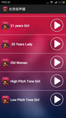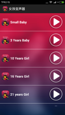 3、播放录制的声音在不同的年龄段女孩的声音:实时切换不同年龄段的变声效果,对比选择最合适的;