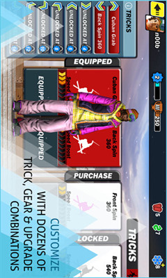 4、收录超过100种专业滑雪技巧教学,从基础的平行转弯到高难度的后空翻三周半,循序渐进的教学系统帮助玩家成长为全能滑雪高手。