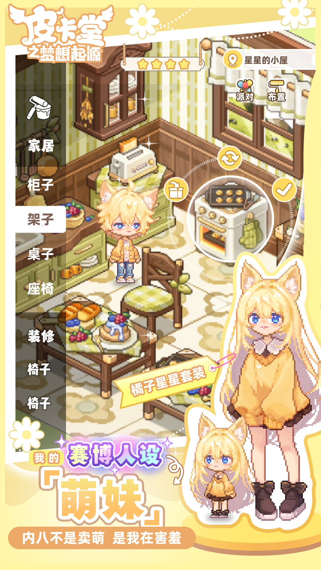 《皮卡堂之梦想起源2025最新版》是一款充满无限可能的虚拟社交养成游戏,带你进入一个梦幻般的皮卡堂世界。在这里,你可以尽情发挥创意,打造专属的个性空间,与来自各地的玩家成为朋友,共同探索丰富多彩的虚拟生活。游戏采用精美的卡通风格画面,搭配轻松愉悦的背景音乐,营造出温馨治愈的游戏氛围。无论是布置房间、参加派对,还是完成各种趣味任务,都能让你感受到满满的成就感和社交乐趣。2025最新版本更带来了诸多创新玩法,让你的皮卡堂之旅更加精彩纷呈。