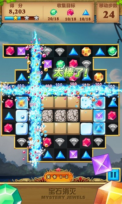 ·超精美的各色宝石:数十种造型各异的宝石,从经典钻石到稀有宝石应有尽有。每种宝石都经过精心设计,色彩饱满,细节丰富,让消除过程赏心悦目。