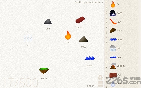 3、初始仅提供气、土、火、水四种基础元素,通过不断合成可以解锁500多种进阶元素