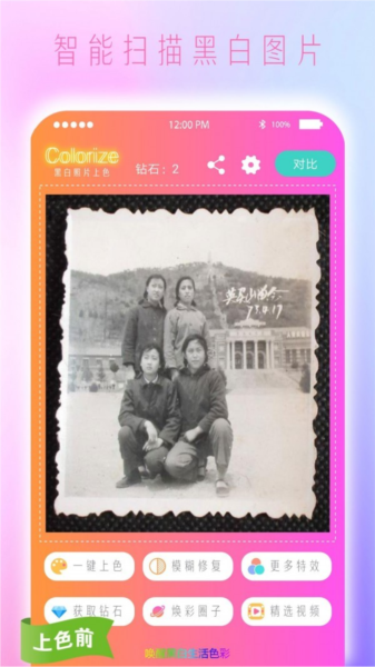 支持扫描纸质黑白照片或直接从设备相册导入照片,兼容JPG、PNG等多种格式