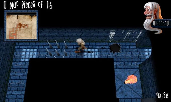 游戏采用创新的单摇杆操控系统,玩家只需通过简单的滑动操作就能精准控制老人移动。点击左上角的地图按钮可以随时查看当前位置和收集进度。随着游戏深入,玩家会遇到越来越复杂的机关设计:定时喷火的洞口、随机移动的陷阱盖、突然从地面冒出的尖刺等。每个关卡都经过精心设计,难度循序渐进,既考验玩家的反应能力,又需要运用策略思维。成功通关后还能解锁特殊成就,为游戏增添了更多可玩性。