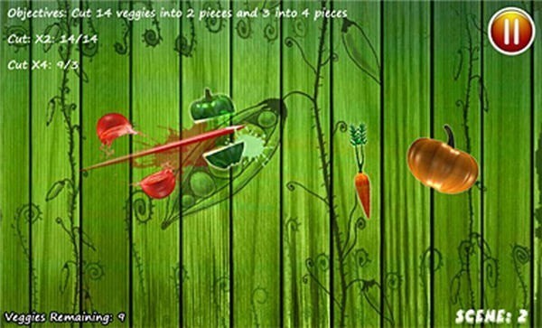 2、在经典切水果玩法基础上创新加入蔬菜元素,并设计了独特的连击系统和特殊道具。
