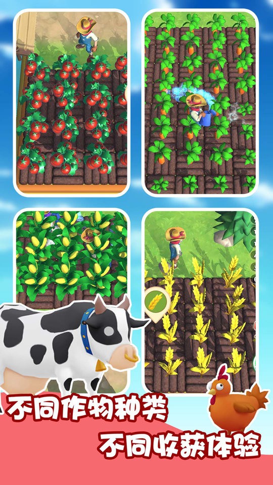 --游戏的操作方法特别的简单,只需要点击相应的按钮就可以完成种植的操作;新增手势操作,滑动屏幕即可快速收获大片作物;