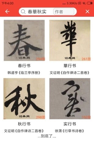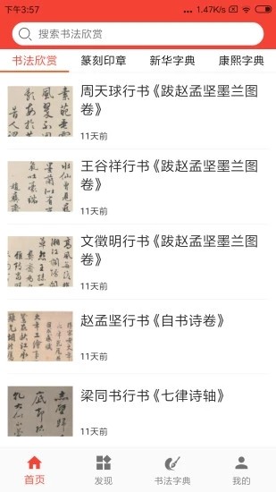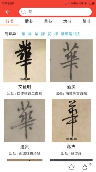 5、可查询行书、草书、隶书、篆书、楷书五种书法字体,支持多种检索方式;