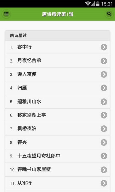 6、智能搜索功能让宝宝能在海量诗歌中快速找到想学的内容,支持按诗名、作者、主题等多种方式搜索,操作简单方便。