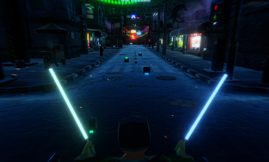 • 惊人的声音和视觉效果:游戏采用高品质电子音乐,配合光剑劈砍时的粒子特效和震动反馈,营造出极具冲击力的视听体验。每次完美连击都会触发华丽的特效。