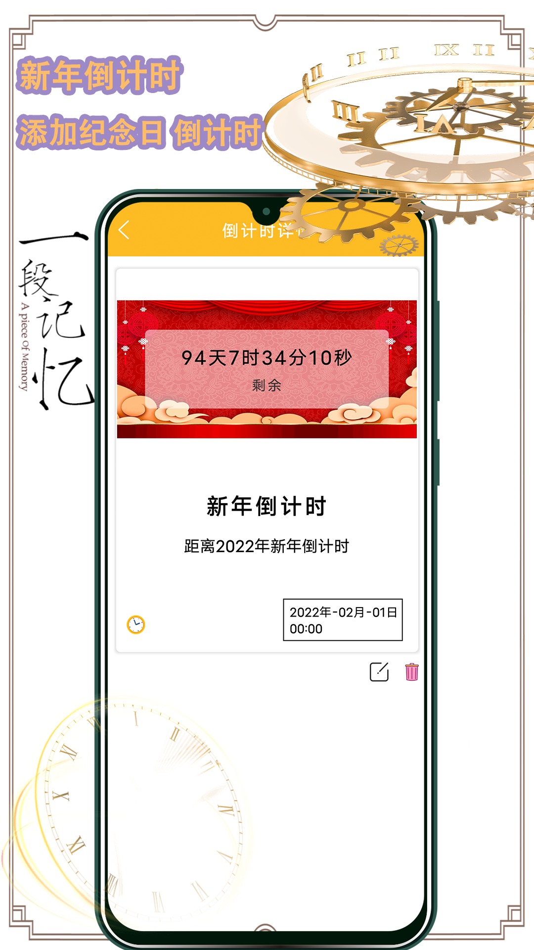 软件提供全方位的时光管理解决方案:不仅能记录家人朋友的生日、纪念日等特殊时刻,还能智能计算距离未来重要日子的剩余时间。通过可视化时间轴,您可以随时回顾过去的美好回忆,同时满怀期待地规划未来的精彩生活。特别设计的重复事件提醒功能,确保您不会错过每一个周期性重要日期,让时间管理变得更加轻松高效。