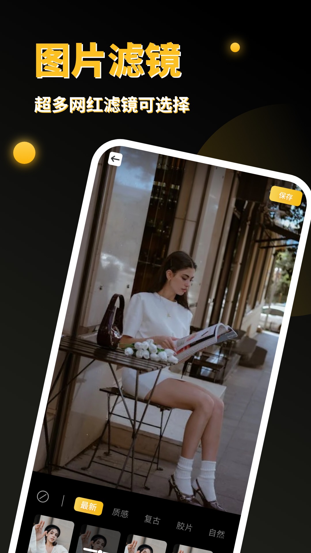 这是一款功能强大的修图与拍照软件,集美图素材、拍照、修图、拼图裁剪等多种功能于一体,能够满足用户对图像处理的多样化需求。无论是日常拍照还是专业修图,它都能帮助你轻松打造出令人惊艳的画面效果。操作简单直观,即使是新手也能快速上手,让你随时随地按照自己的想法创作出独特的作品。丰富的素材库和强大的编辑工具,让你的每一张照片都能展现出最佳状态。