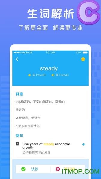 贴心的学习管家:智能记录用户学习轨迹,自动生成遗忘曲线分析报告,通过数据可视化帮助用户清晰掌握记忆薄弱点。系统会定期推送待复习单词,支持按错误率、记忆强度等多维度筛选,实现精准查缺补漏。