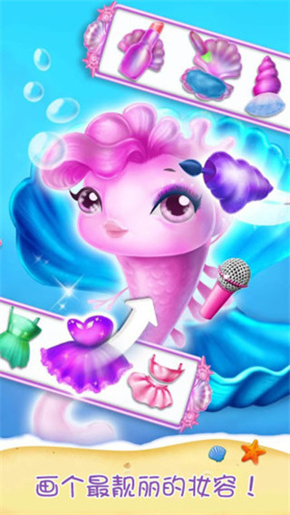 1、认识最可爱的美人鱼和最可爱的人鱼!游戏中收录了数十种不同风格的美人鱼角色,从甜美萝莉到优雅御姐,总有一款能打动你的心。2、帮助男生贾斯汀找到他的宠物海马!这个充满爱心的任务将带你探索神秘的海底洞穴,结识各种有趣的海洋生物。3、用北极熊制作美味的冰淇淋!在冰雪王国里,你可以学习制作各种口味的冰淇淋,还能为北极熊设计专属甜品。4、为小企鹅组织生日派对!从场地布置到蛋糕制作,每个细节都由你亲手操办,打造最难忘的生日庆典。5、帮助螃蟹清理他的家!在这个环保主题的任务中,你将学会垃圾分类,还能获得珍贵的贝壳作为奖励。6、为鲨鱼制作最美味的汉堡!谁说鲨鱼只吃小鱼?来试试制作特制汉堡,让这位海洋霸主也爱上素食。7、装饰美人鱼的家!从壁纸选择到家具摆放,你可以按照自己的审美打造梦幻海底公寓。