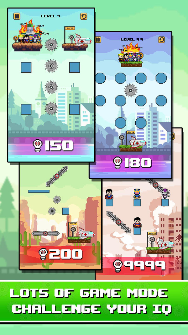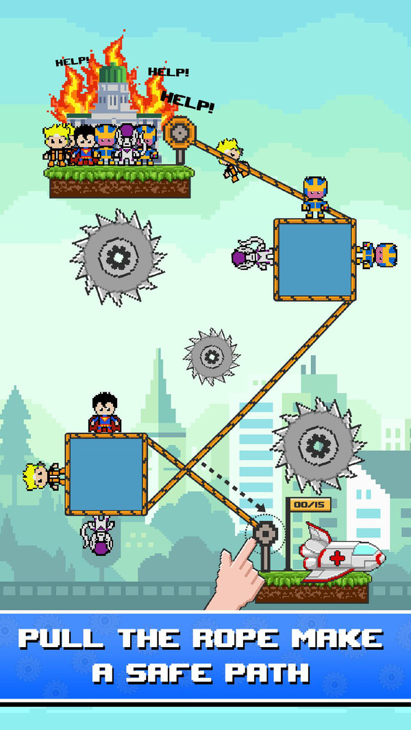 3、玩家可以通过绳索,绳索等方式来帮助女孩脱离危险,这是一款非常有趣的游戏。游戏还设计了多种救援目标,除了常规火柴人外,还有特殊角色等待解救,增加了游戏的可玩性和趣味性。