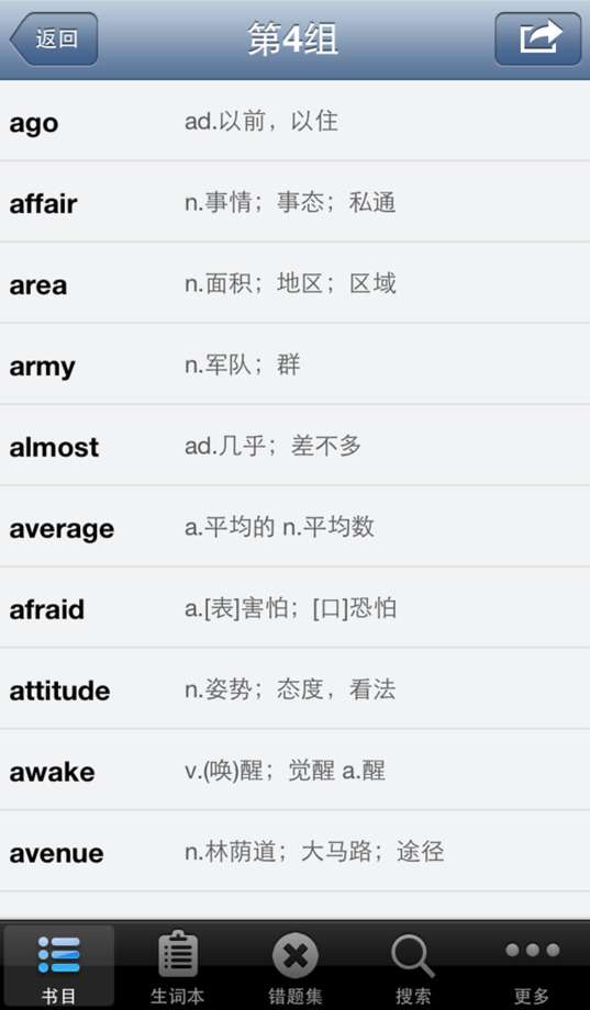 本系列APP精心整合了从初中到研究生阶段的所有核心词汇,包括人教版教材单元词汇、大学英语四六级、托福、GRE等考试高频词汇。初中高中词汇严格按教材单元划分,便于同步课堂学习;高阶词汇采用乱序排列,避免记忆惯性。每个APP包含100个精选单词,科学分配学习量。特别值得一提的是,所有词库都经过专业教研团队反复校验,确保释义准确、例句实用。应用还会根据用户学习数据动态调整词表顺序,让记忆效率最大化。