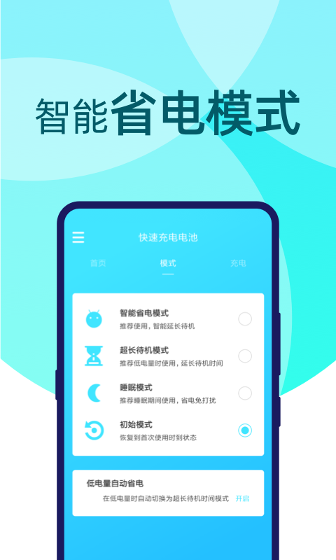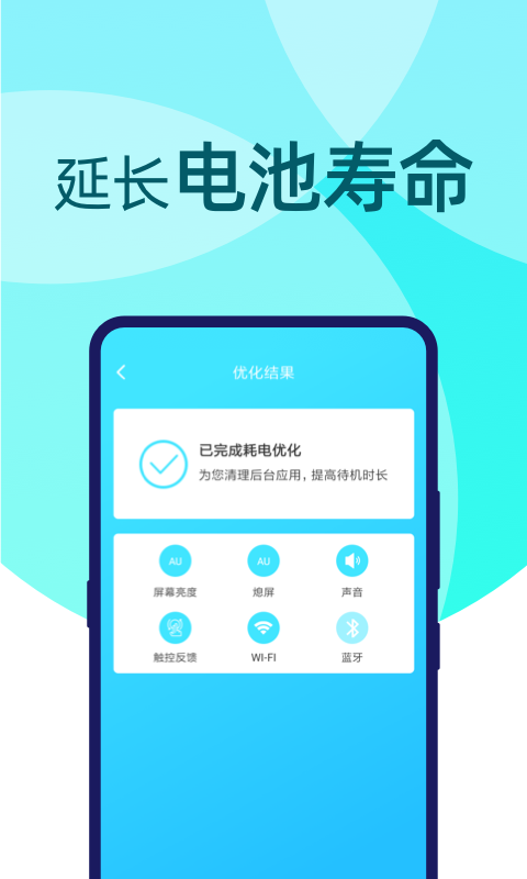 【一键省电】智能分析后台耗电应用,一键优化系统设置,全面降低功耗,显著延长手机待机时间;